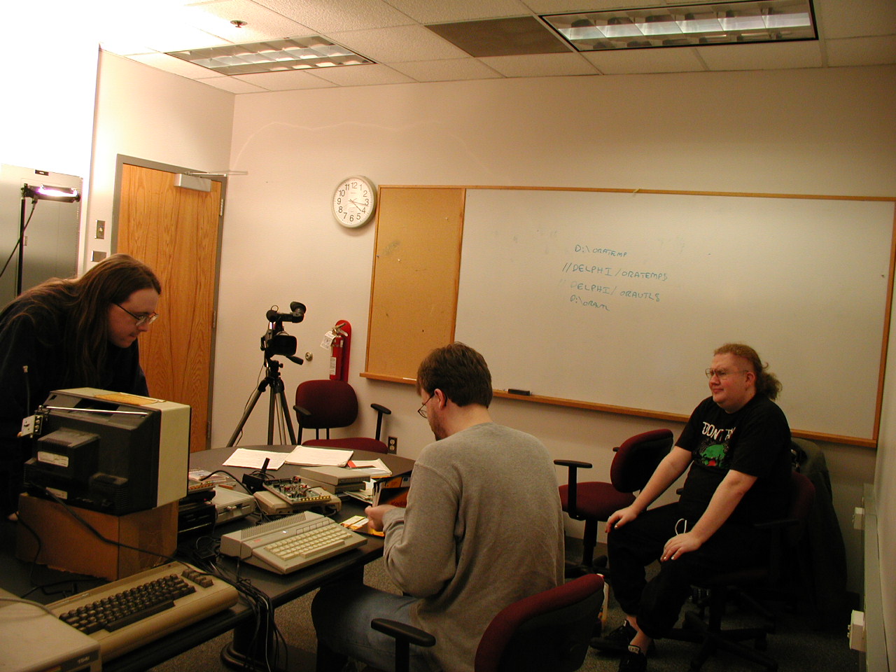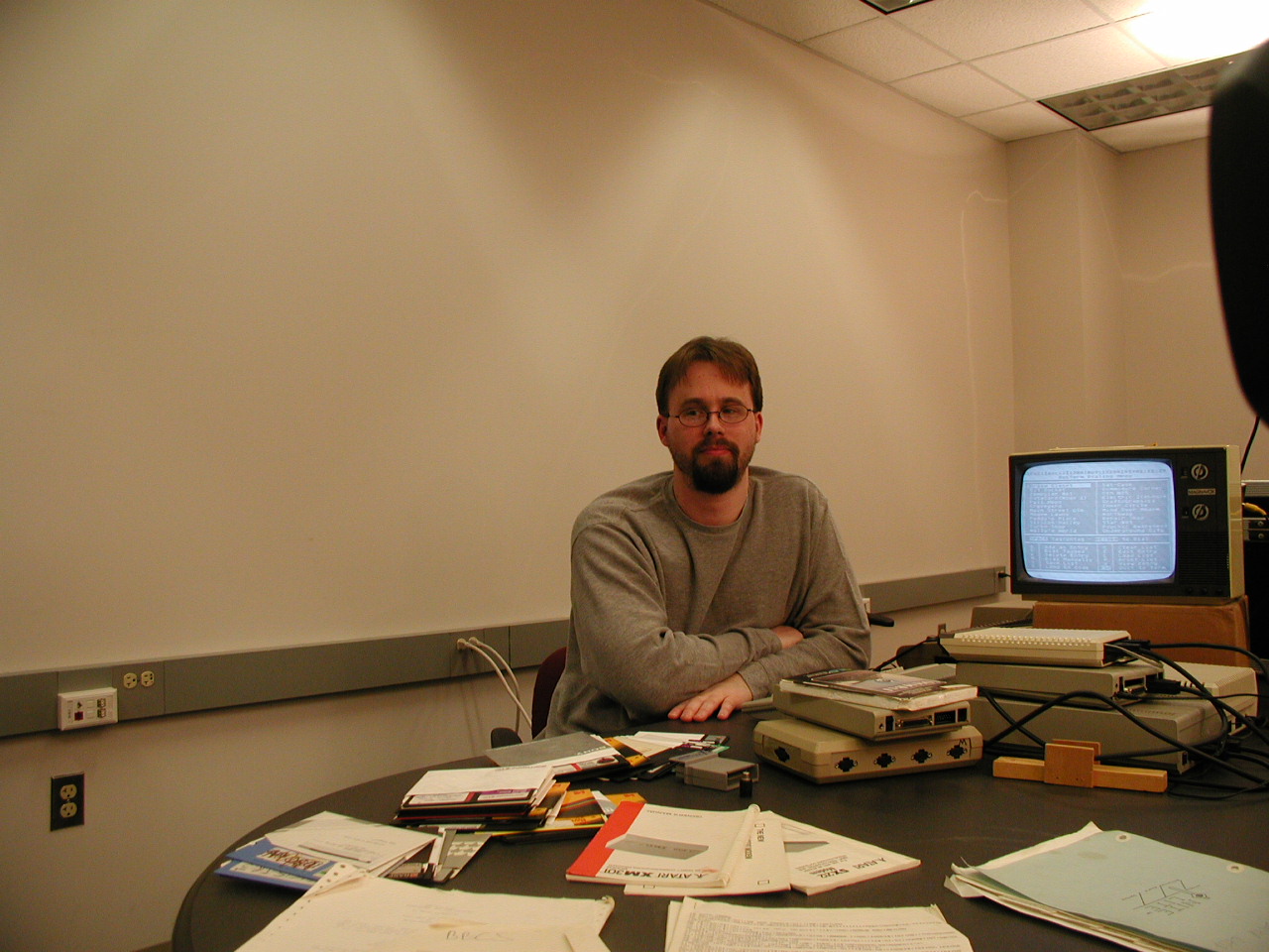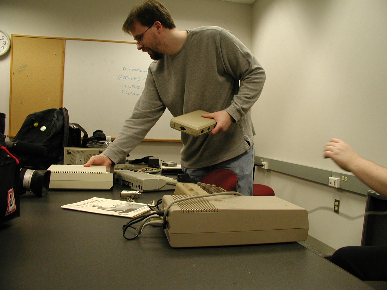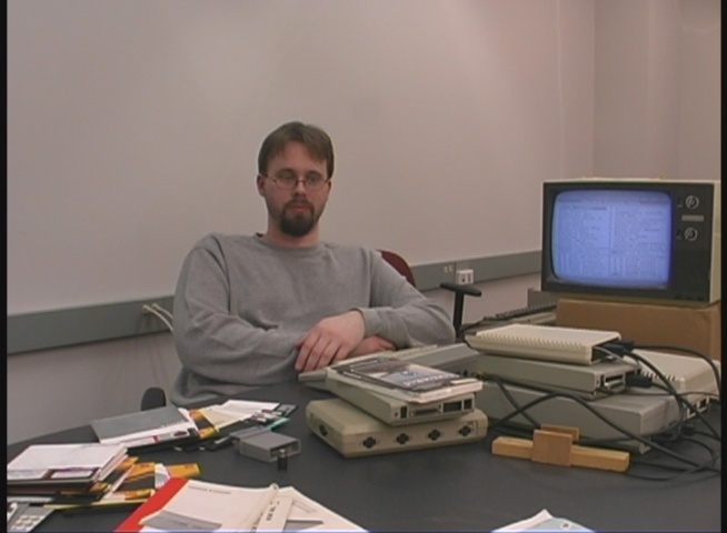 classrooms, with all their 8-bit equipment (Macintosh, C64, Atari) splayed