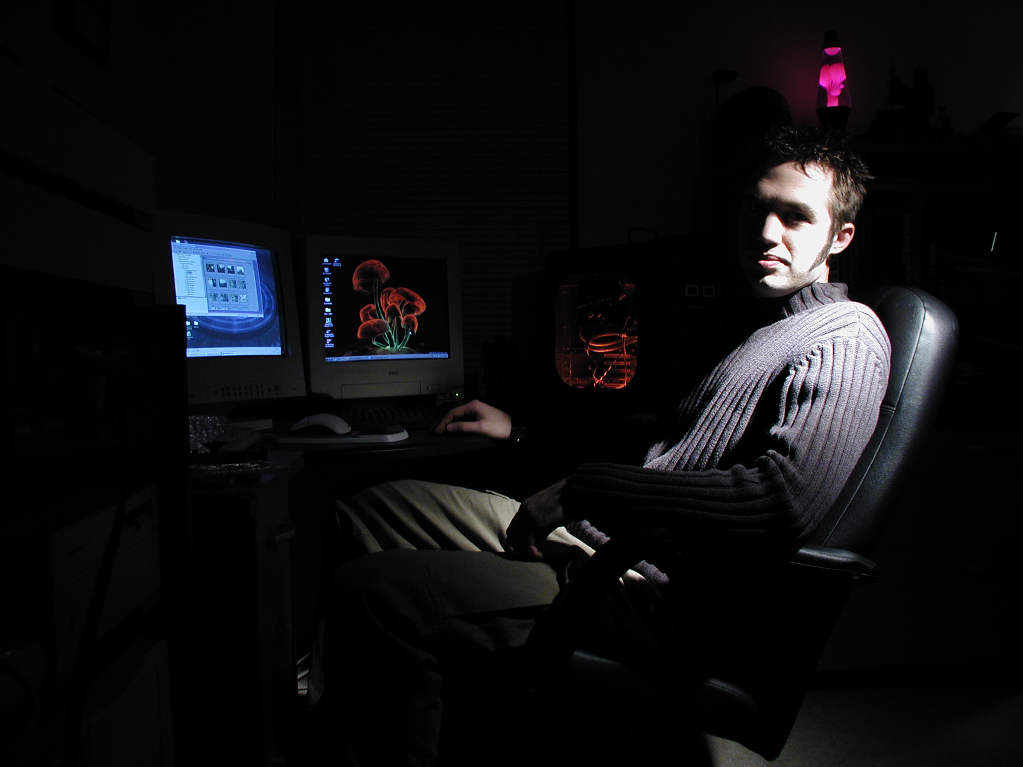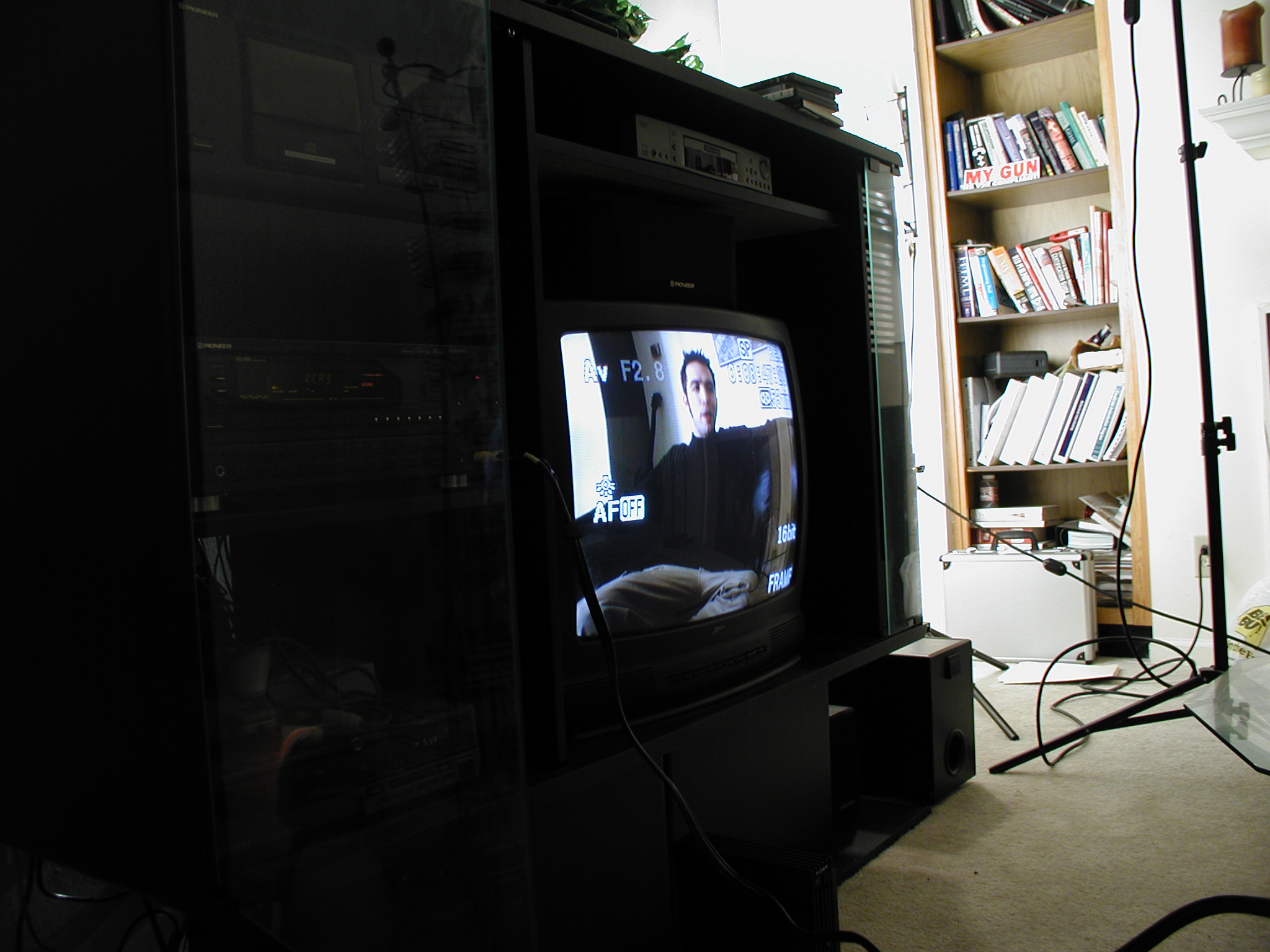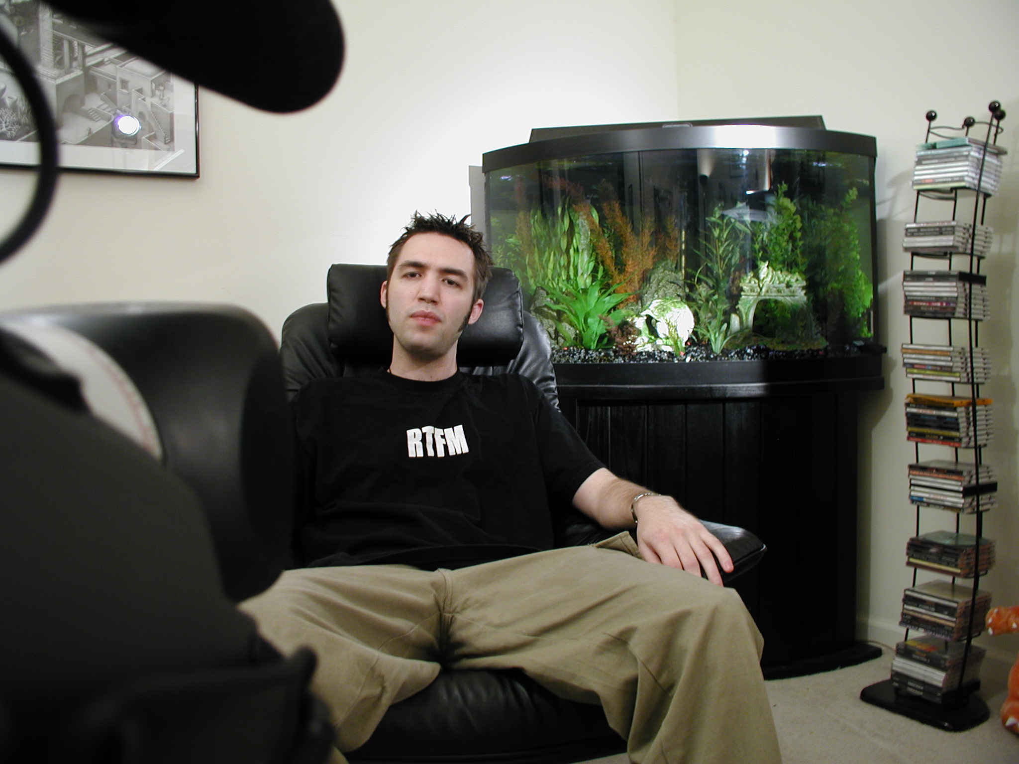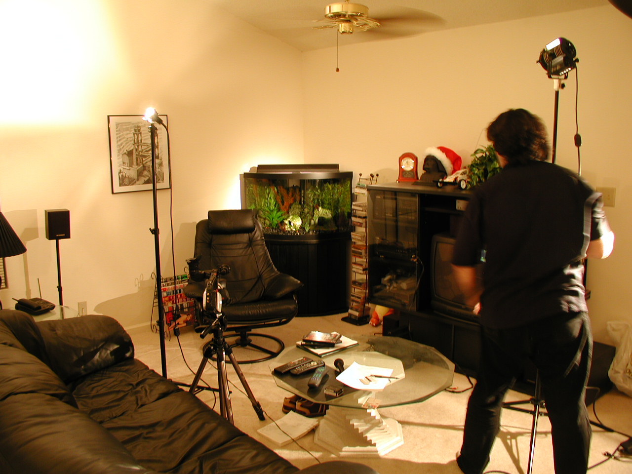 of his fishtank, his dining room, and facing his hallway (for variety).