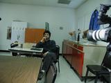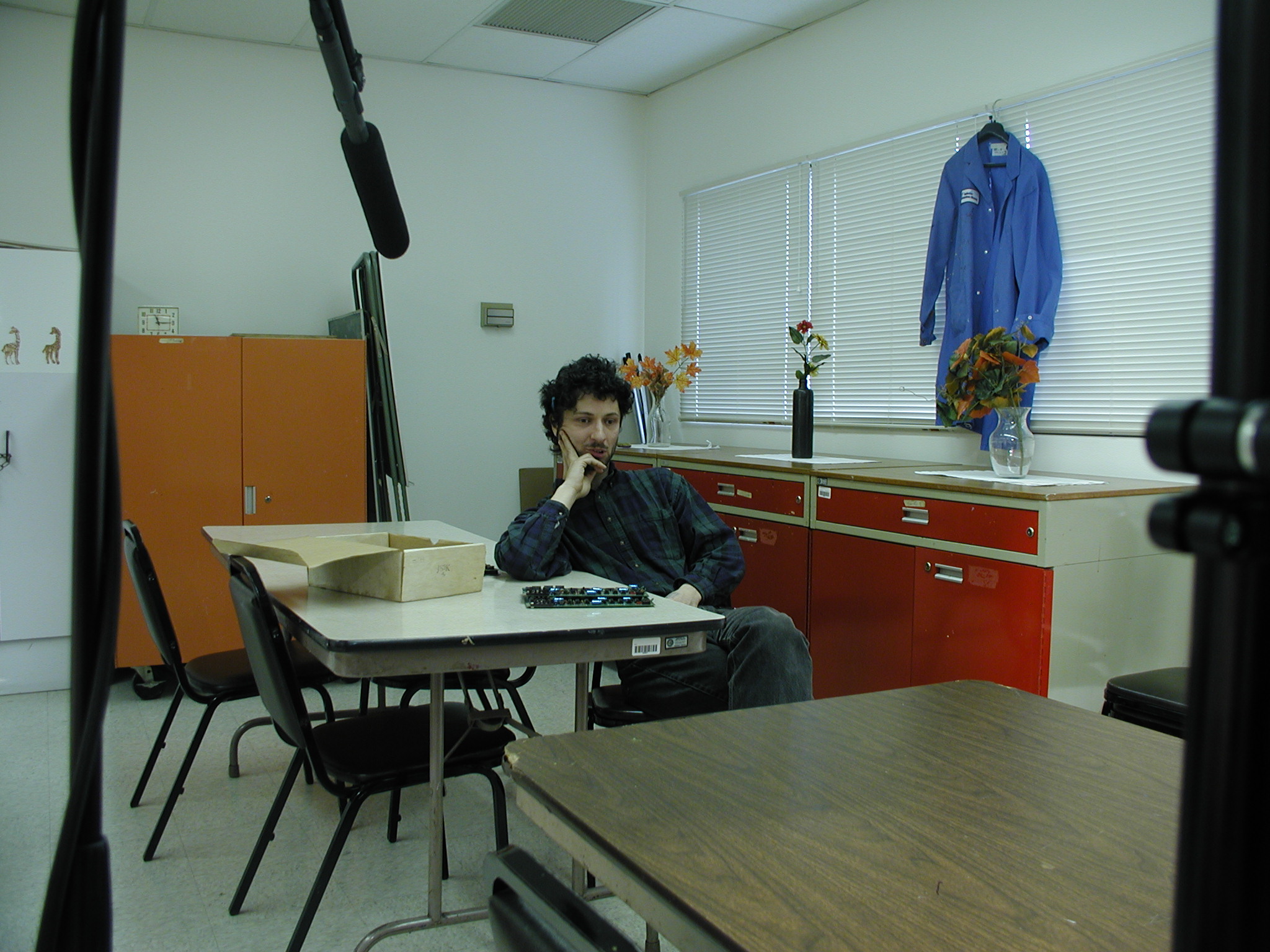 him to sit in front of the camera.