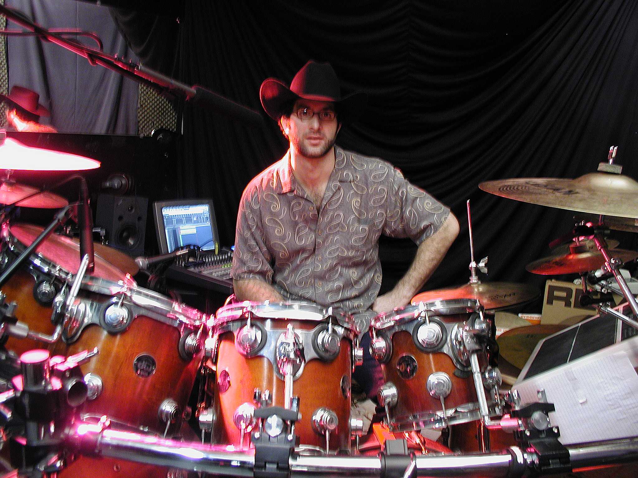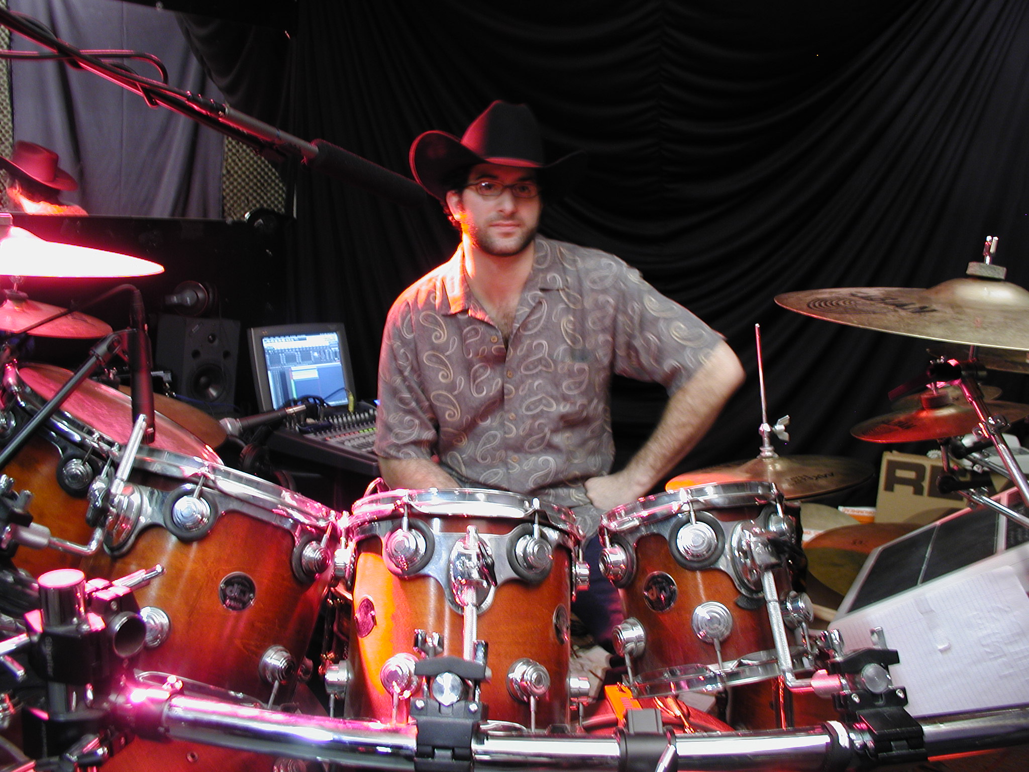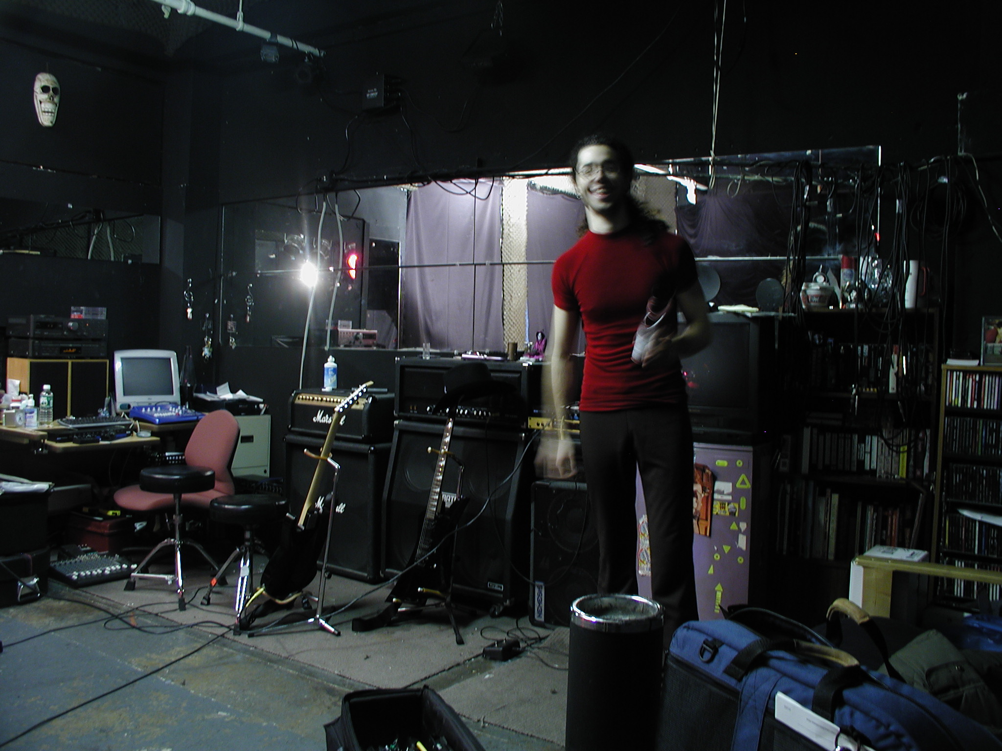 In Pud's space, he had a massive drum set, a bunch of keyboards and drum
