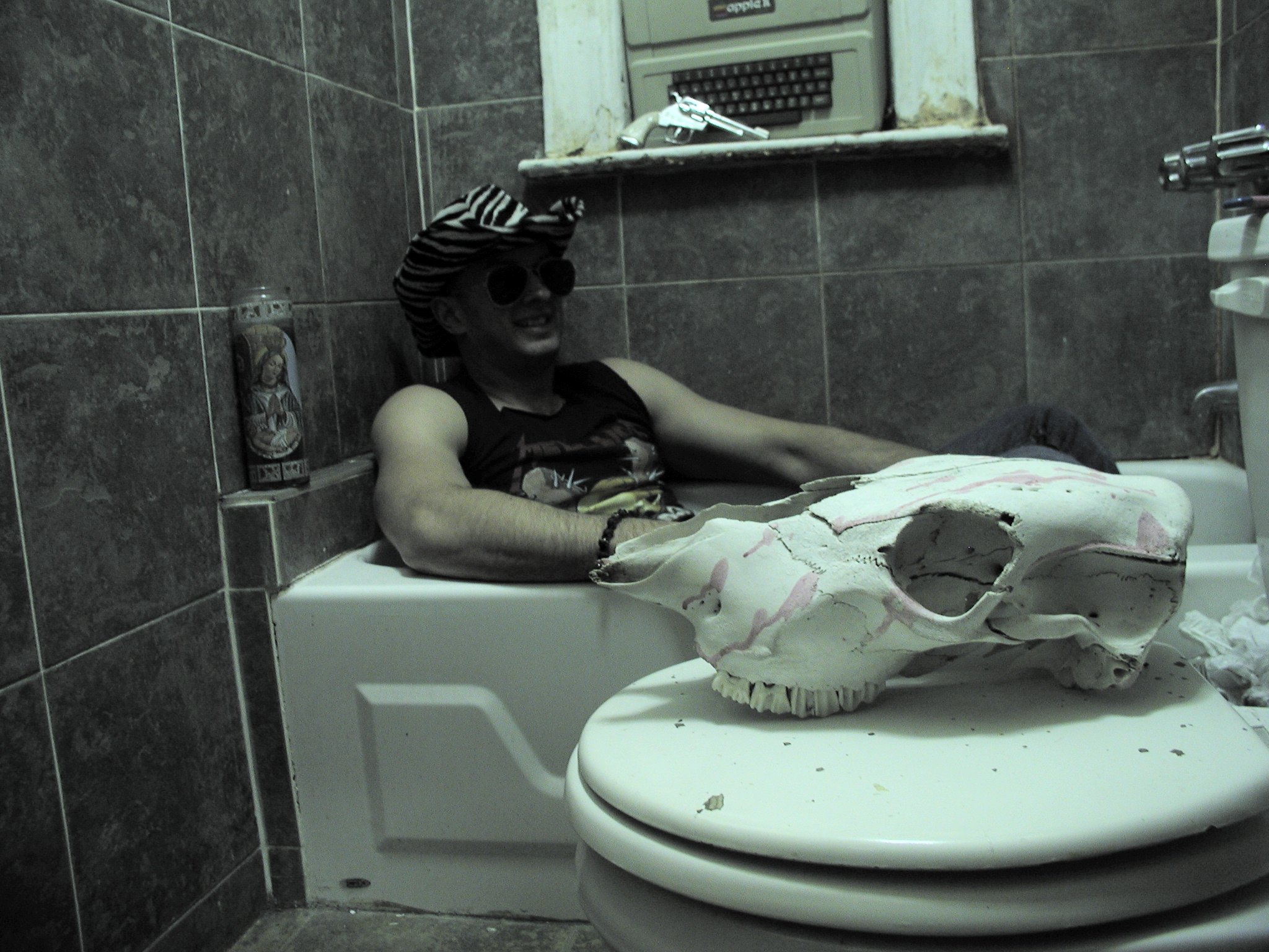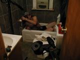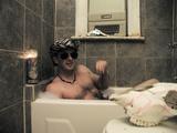 of his computer setup and in his bathtub. Now, as for that bathtub...