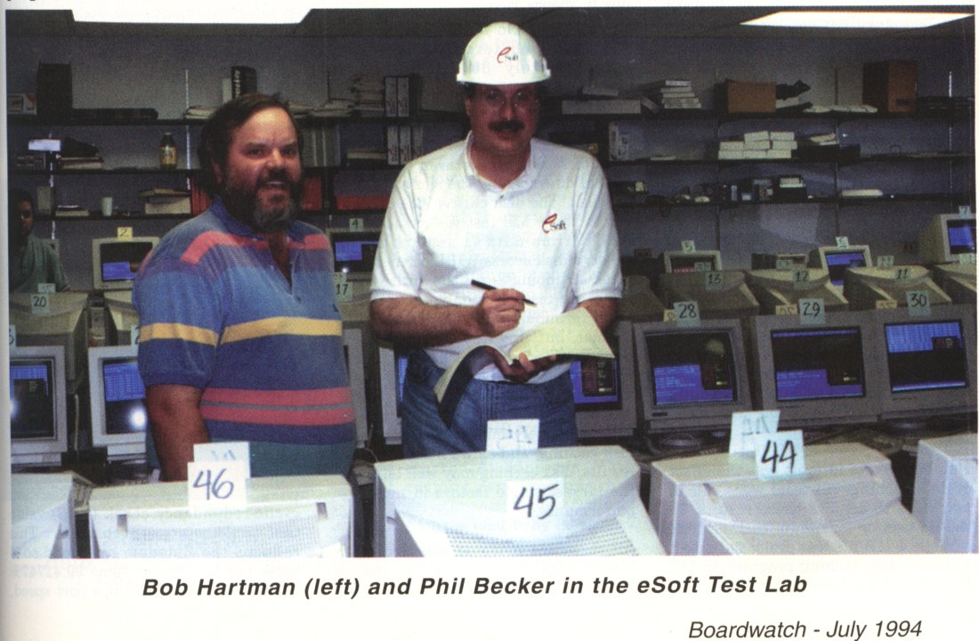 Photo of Bob Hartman and Phil Becker in eSoft Testing Lab, Boardwatch (July, 1994) (Small)