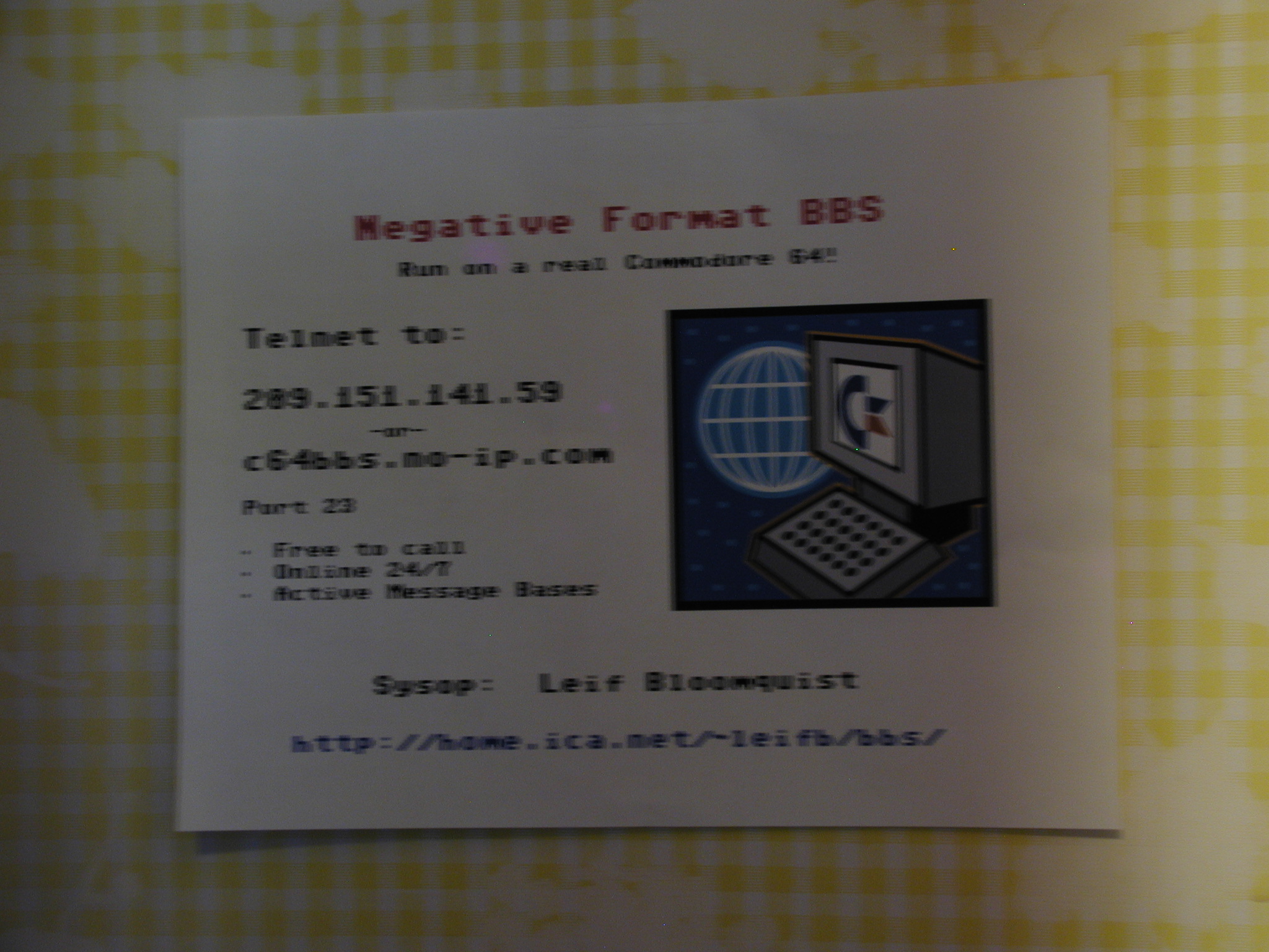 Advertisement for Bloomquist's Telnetable C-64 BBS