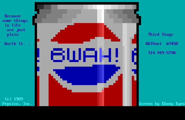 ANSI by Ebony Eyes: Bwah! BBS: Becomes Some Things in Life are Worth It (1989)