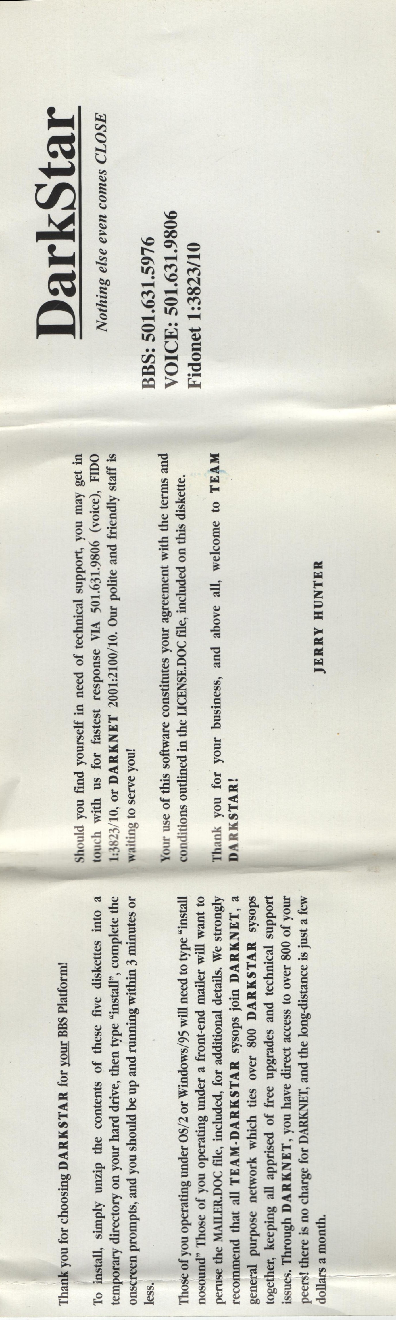 The DarkStar BBS software was considered ahead of its time and impressive
